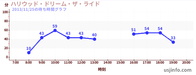 • ハリウッド・ドリーム・ザ・ライド$B$N(B2013年11月25日の待ち時間