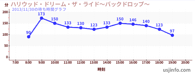 • ハリウッド・ドリーム・ザ・ライド〜バックドロップ〜$B$N(B2013年11月30日の待ち時間