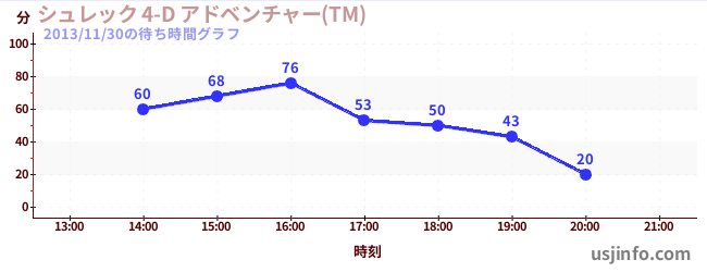 • シュレック 4-D アドベンチャー(TM)$B$N(B2013年11月30日の待ち時間