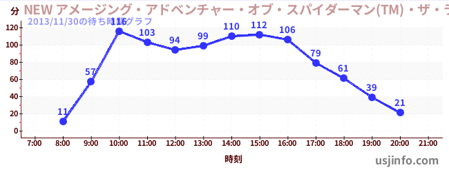 • NEW アメージング・アドベンチャー・オブ・スパイダーマン(TM)・ザ・ライド 4K3D$B$N(B2013年11月30日の待ち時間