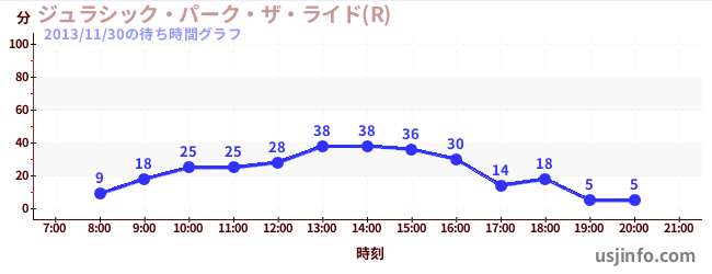 • ジュラシック・パーク・ザ・ライド(R)$B$N(B2013年11月30日の待ち時間