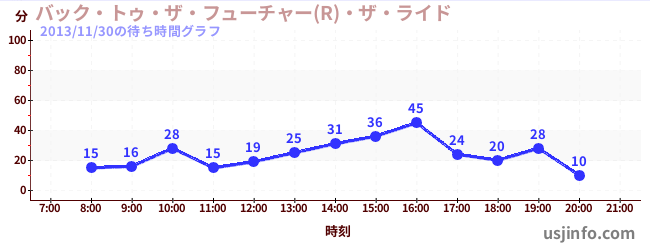 • バック・トゥ・ザ・フューチャー(R)・ザ・ライド$B$N(B2013年11月30日の待ち時間