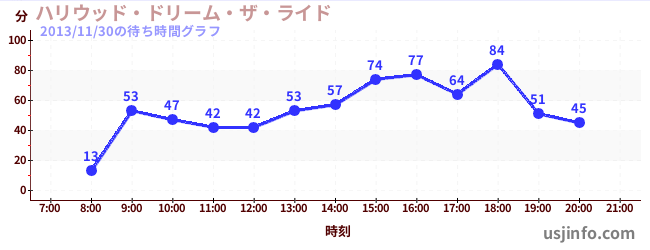 • ハリウッド・ドリーム・ザ・ライド$B$N(B2013年11月30日の待ち時間