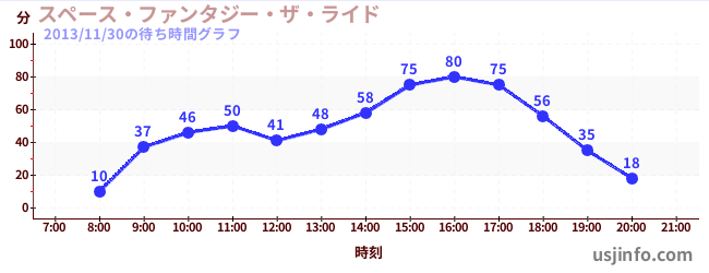 • スペース・ファンタジー・ザ・ライド$B$N(B2013年11月30日の待ち時間
