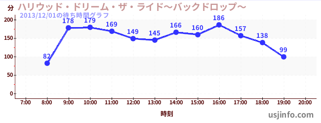 • ハリウッド・ドリーム・ザ・ライド〜バックドロップ〜$B$N(B2013年12月01日の待ち時間