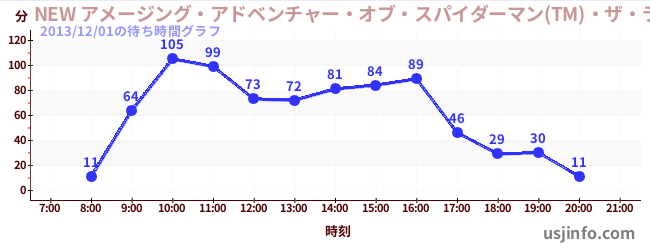 • NEW アメージング・アドベンチャー・オブ・スパイダーマン(TM)・ザ・ライド 4K3D$B$N(B2013年12月01日の待ち時間