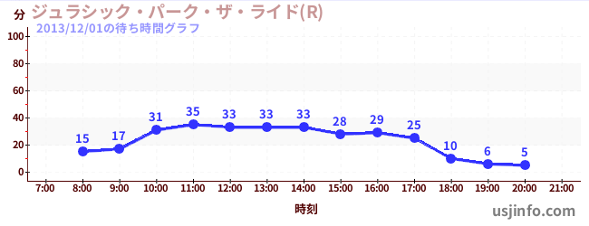 • ジュラシック・パーク・ザ・ライド(R)$B$N(B2013年12月01日の待ち時間