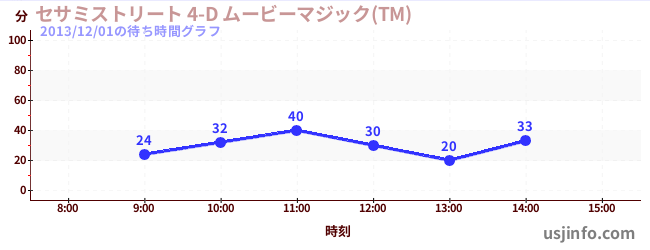 • セサミストリート 4-D ムービーマジック(TM)$B$N(B2013年12月01日の待ち時間