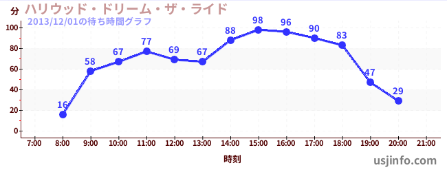 • ハリウッド・ドリーム・ザ・ライド$B$N(B2013年12月01日の待ち時間