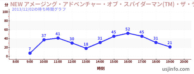 • NEW アメージング・アドベンチャー・オブ・スパイダーマン(TM)・ザ・ライド 4K3D$B$N(B2013年12月02日の待ち時間