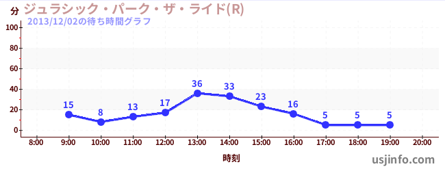 • ジュラシック・パーク・ザ・ライド(R)$B$N(B2013年12月02日の待ち時間