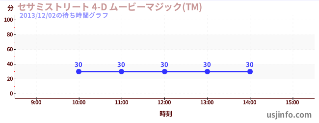 • セサミストリート 4-D ムービーマジック(TM)$B$N(B2013年12月02日の待ち時間