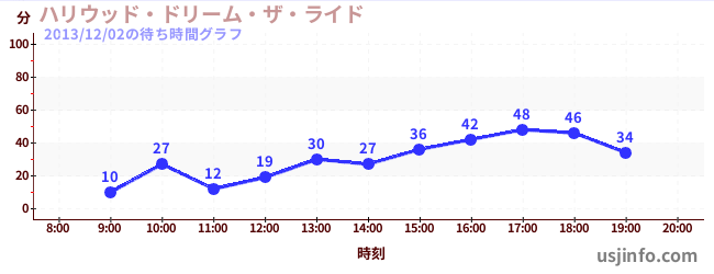 • ハリウッド・ドリーム・ザ・ライド$B$N(B2013年12月02日の待ち時間