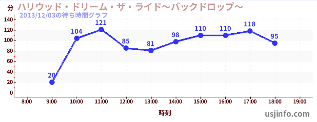 • ハリウッド・ドリーム・ザ・ライド〜バックドロップ〜$B$N(B2013年12月03日の待ち時間
