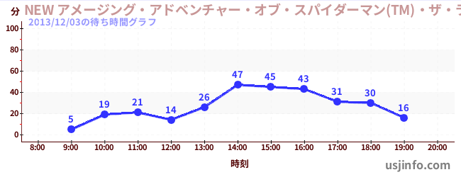 • NEW アメージング・アドベンチャー・オブ・スパイダーマン(TM)・ザ・ライド 4K3D$B$N(B2013年12月03日の待ち時間