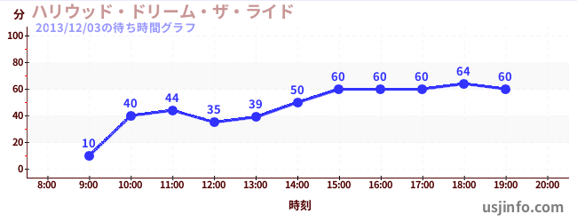 • ハリウッド・ドリーム・ザ・ライド$B$N(B2013年12月03日の待ち時間