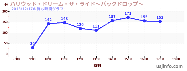 • ハリウッド・ドリーム・ザ・ライド〜バックドロップ〜$B$N(B2013年12月17日の待ち時間