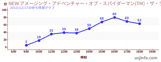 • NEW アメージング・アドベンチャー・オブ・スパイダーマン(TM)・ザ・ライド 4K3D$B$N(B2013年12月17日の待ち時間