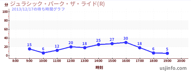 • ジュラシック・パーク・ザ・ライド(R)$B$N(B2013年12月17日の待ち時間