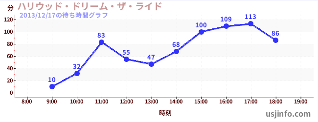 • ハリウッド・ドリーム・ザ・ライド$B$N(B2013年12月17日の待ち時間