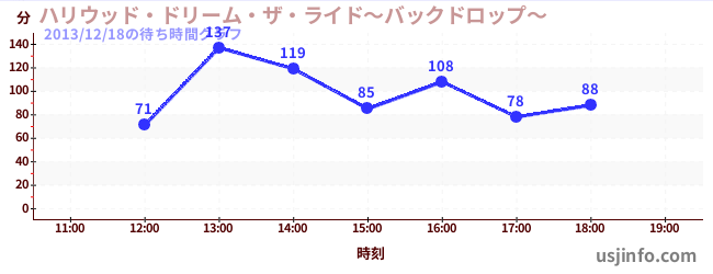 • ハリウッド・ドリーム・ザ・ライド〜バックドロップ〜$B$N(B2013年12月18日の待ち時間