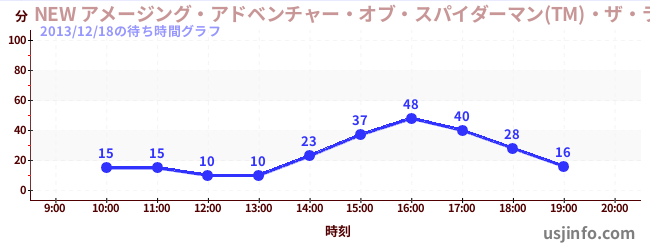 • NEW アメージング・アドベンチャー・オブ・スパイダーマン(TM)・ザ・ライド 4K3D$B$N(B2013年12月18日の待ち時間