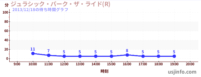 • ジュラシック・パーク・ザ・ライド(R)$B$N(B2013年12月18日の待ち時間