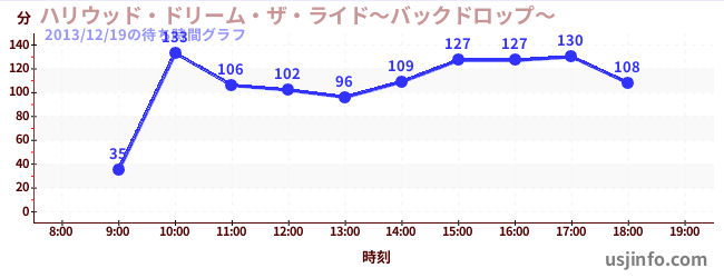 • ハリウッド・ドリーム・ザ・ライド〜バックドロップ〜$B$N(B2013年12月19日の待ち時間