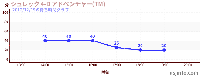 • シュレック 4-D アドベンチャー(TM)$B$N(B2013年12月19日の待ち時間