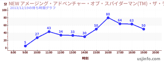 • NEW アメージング・アドベンチャー・オブ・スパイダーマン(TM)・ザ・ライド 4K3D$B$N(B2013年12月19日の待ち時間