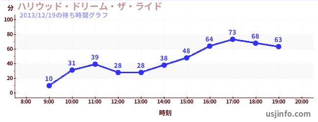 • ハリウッド・ドリーム・ザ・ライド$B$N(B2013年12月19日の待ち時間