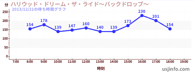 • ハリウッド・ドリーム・ザ・ライド〜バックドロップ〜$B$N(B2013年12月21日の待ち時間