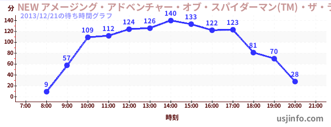 • NEW アメージング・アドベンチャー・オブ・スパイダーマン(TM)・ザ・ライド 4K3D$B$N(B2013年12月21日の待ち時間