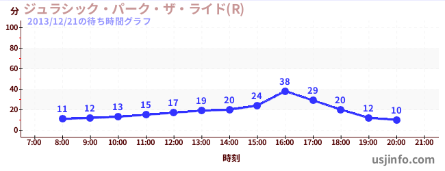 • ジュラシック・パーク・ザ・ライド(R)$B$N(B2013年12月21日の待ち時間