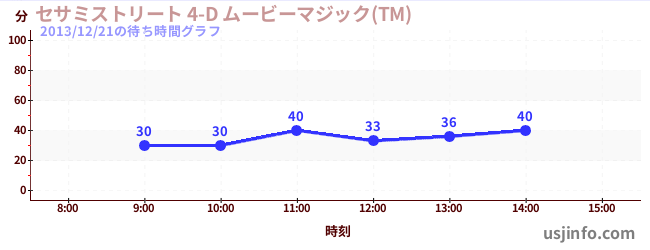 • セサミストリート 4-D ムービーマジック(TM)$B$N(B2013年12月21日の待ち時間