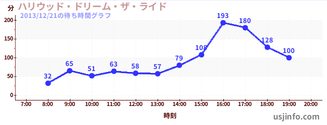 • ハリウッド・ドリーム・ザ・ライド$B$N(B2013年12月21日の待ち時間