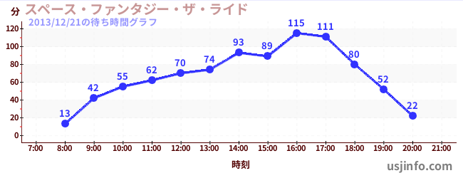 • スペース・ファンタジー・ザ・ライド$B$N(B2013年12月21日の待ち時間