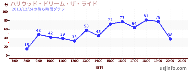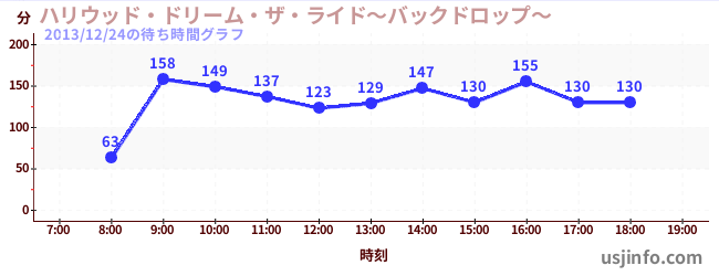 • ハリウッド・ドリーム・ザ・ライド〜バックドロップ〜$B$N(B2013年12月24日の待ち時間
