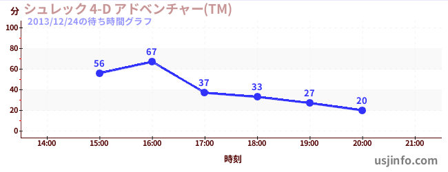 • シュレック 4-D アドベンチャー(TM)$B$N(B2013年12月24日の待ち時間