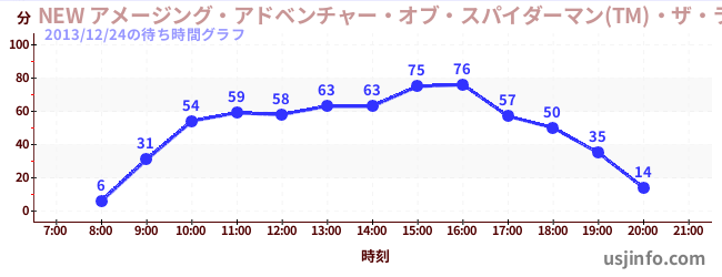 • NEW アメージング・アドベンチャー・オブ・スパイダーマン(TM)・ザ・ライド 4K3D$B$N(B2013年12月24日の待ち時間