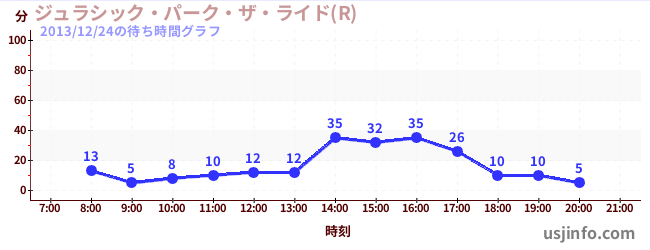 • ジュラシック・パーク・ザ・ライド(R)$B$N(B2013年12月24日の待ち時間