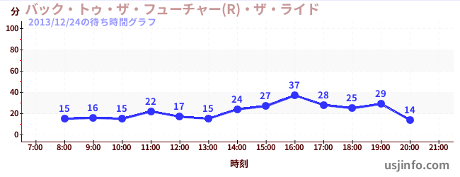 • バック・トゥ・ザ・フューチャー(R)・ザ・ライド$B$N(B2013年12月24日の待ち時間