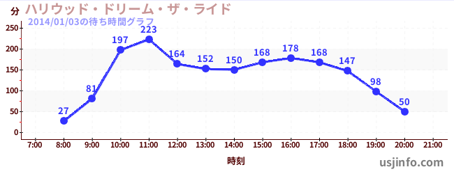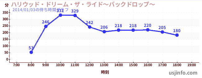 • ハリウッド・ドリーム・ザ・ライド〜バックドロップ〜$B$N(B2014年01月03日の待ち時間