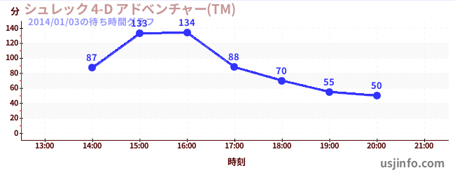 • シュレック 4-D アドベンチャー(TM)$B$N(B2014年01月03日の待ち時間