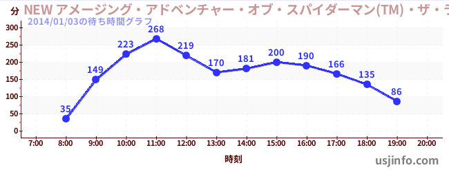 • NEW アメージング・アドベンチャー・オブ・スパイダーマン(TM)・ザ・ライド 4K3D$B$N(B2014年01月03日の待ち時間
