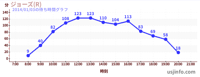 • ジョーズ(R)$B$N(B2014年01月03日の待ち時間