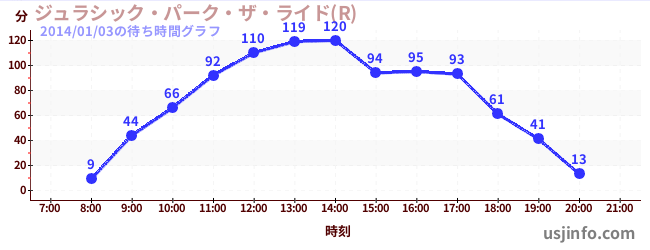 • ジュラシック・パーク・ザ・ライド(R)$B$N(B2014年01月03日の待ち時間