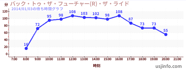 • バック・トゥ・ザ・フューチャー(R)・ザ・ライド$B$N(B2014年01月03日の待ち時間