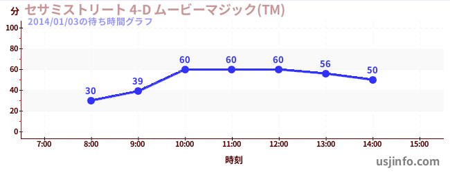 • セサミストリート 4-D ムービーマジック(TM)$B$N(B2014年01月03日の待ち時間