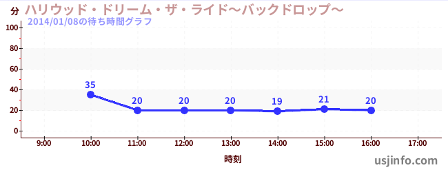 • ハリウッド・ドリーム・ザ・ライド〜バックドロップ〜$B$N(B2014年01月08日の待ち時間